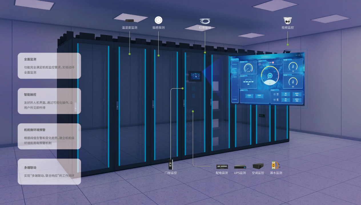 通过分布式部署的多类型传感器网络,无死角覆盖机房运行关键维度,精准采集影响设备稳定与安全的各类参数,为后续数据处理、异常诊断提供全面且可靠的原始数据支撑